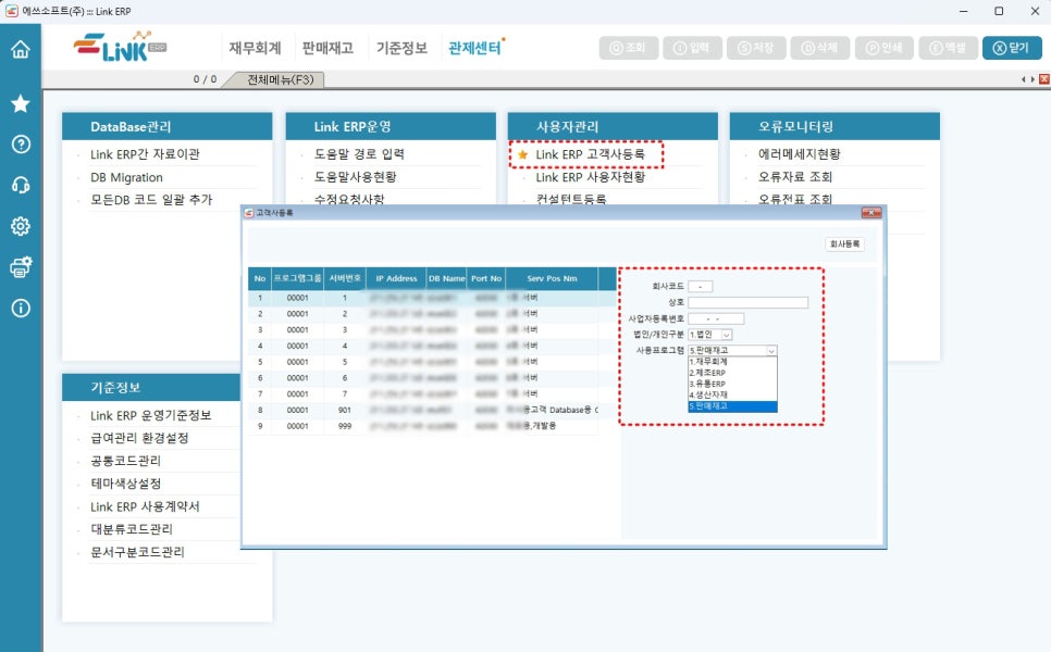 아래 그림과 같이 사용신청을 하면 링크ERP는 바로 사용회사 등록이 가능합니다. 너무 심플하고 빠르지요~