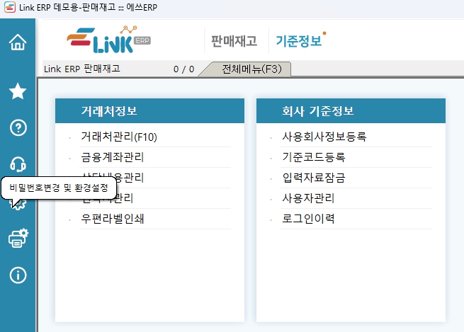Link ERP 프로그램의 환경설정 방법은 아래와 같습니다.