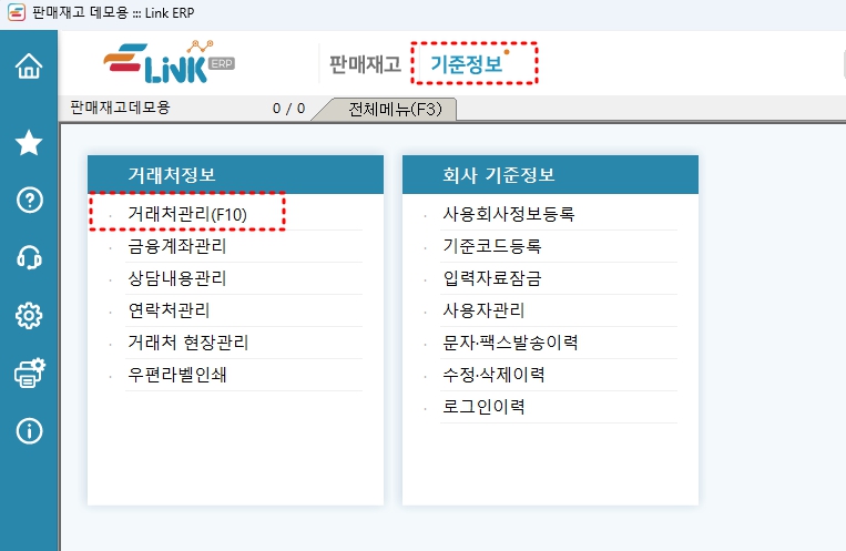 거래처등록 화면을 예를 들면 아래의 그림처럼 메뉴는 하나로 보입니다.