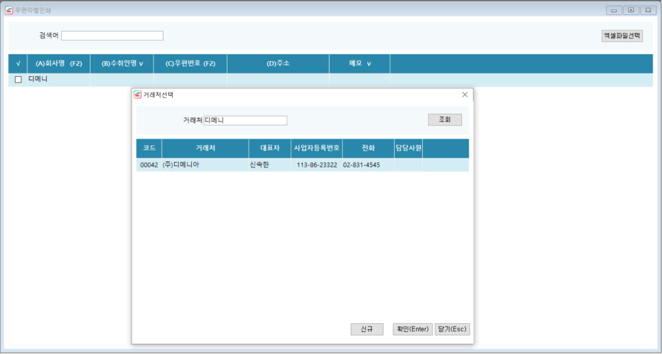 | 우편번호 | [F2]를 눌러 #우편번호 검색으로 주소를 입력 할 수있음 |