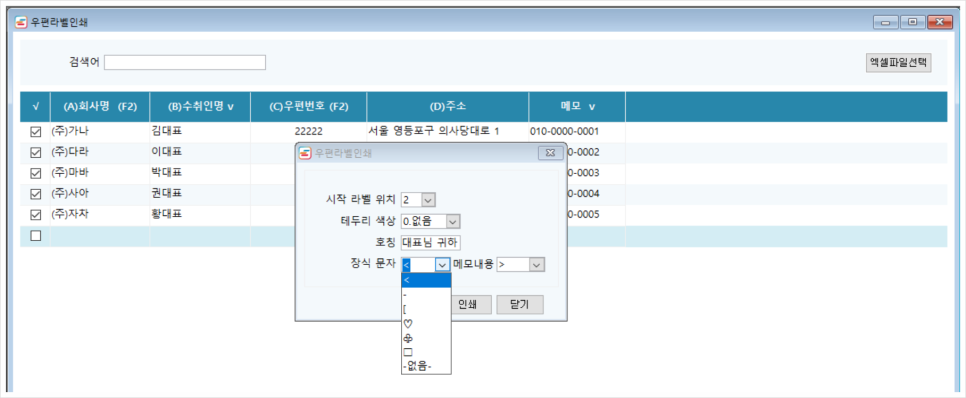 우편라벨의 인쇄