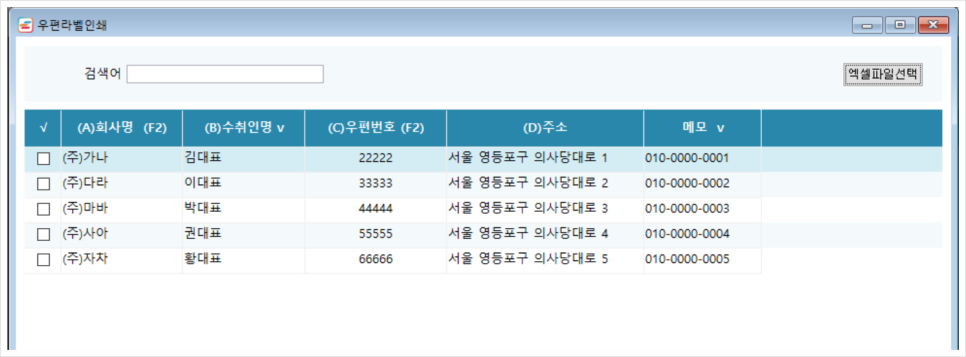 개업식/경조사 등 특수한 다량의 우편물 발송의 경우, 아래의 순서오 같이 정리한 주소록 엑셀 파일이 있으면 됩니다.