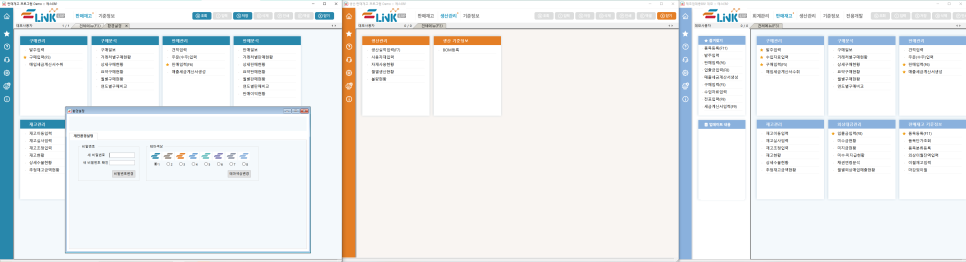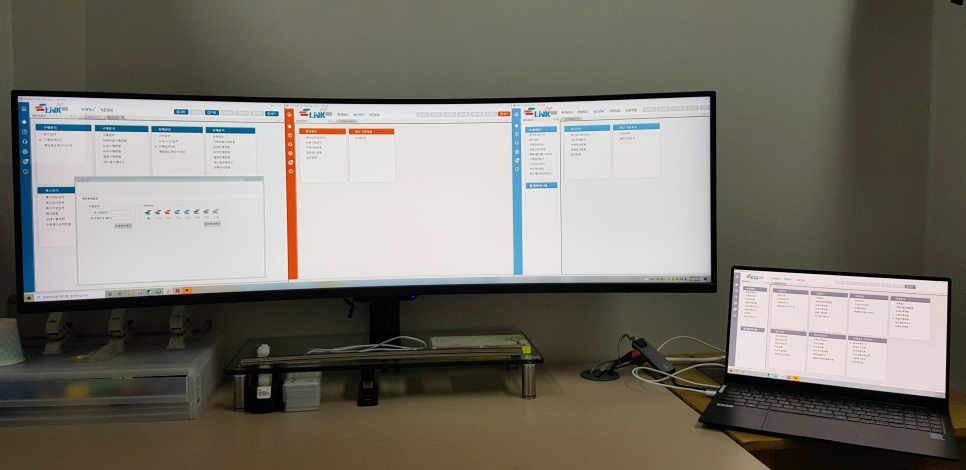 또한 듀얼모니터를 사용하거나 게이밍 모니터(화면 비율 32:9)를 사용할 경우 여러개의 링크ERP를 실행하고 서로 비교하면서 사용할 수 있습니다.