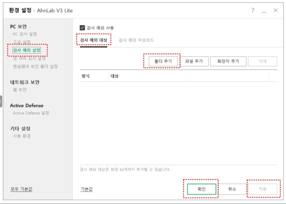V3 검사예외 앱 설정하기