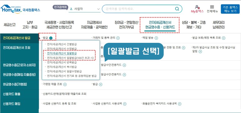 위와 같이 [일괄발급]을 선택함