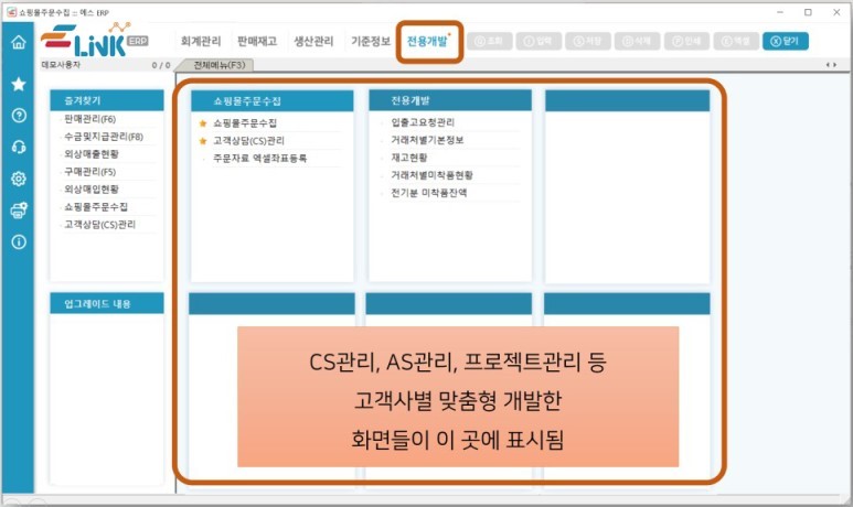제조업ERP 단계 집입 후에는 전용개발 검토를 할 필요가 있습니다.