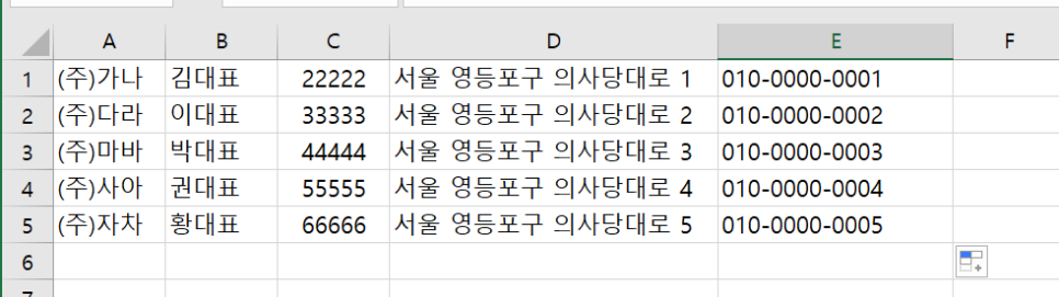 개업식/경조사 등 특수한 다량의 우편물 발송의 경우, 아래의 순서오 같이 정리한 주소록 엑셀 파일이 있으면 됩니다.