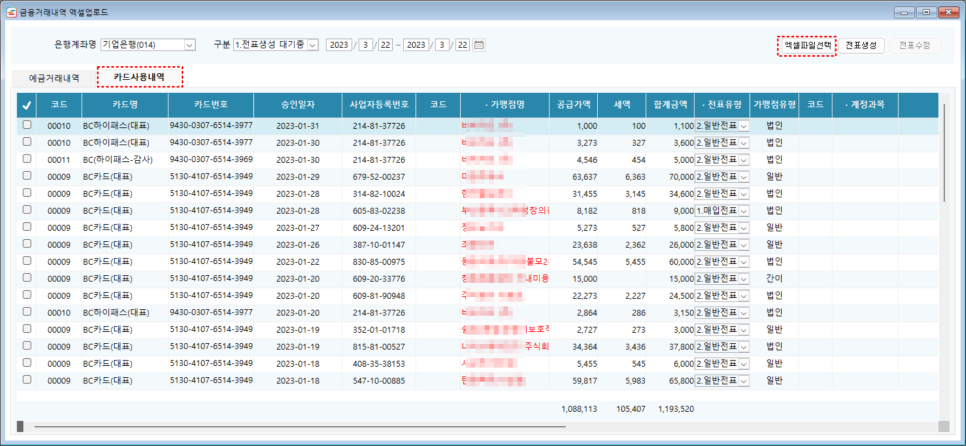 엑셀업로드 하니 카드사용내역도 정확하게 입력 가능해서 편리합니다